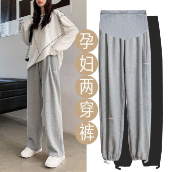 十月名裳孕妇裤子春秋新潮孕妇装外穿打底裤冬季加绒收口直筒两穿休闲长裤 浅灰 不挑身材 L